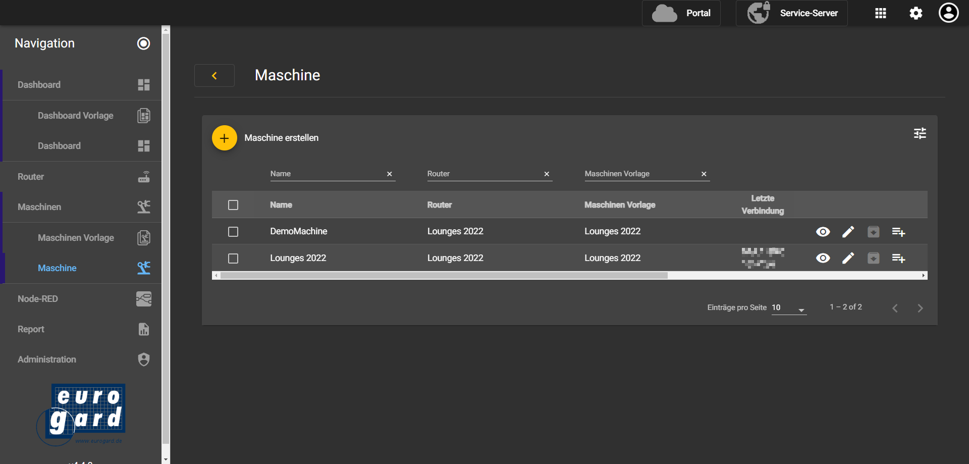 Maschinen in der Portal-App Maschinen in der Settings-App